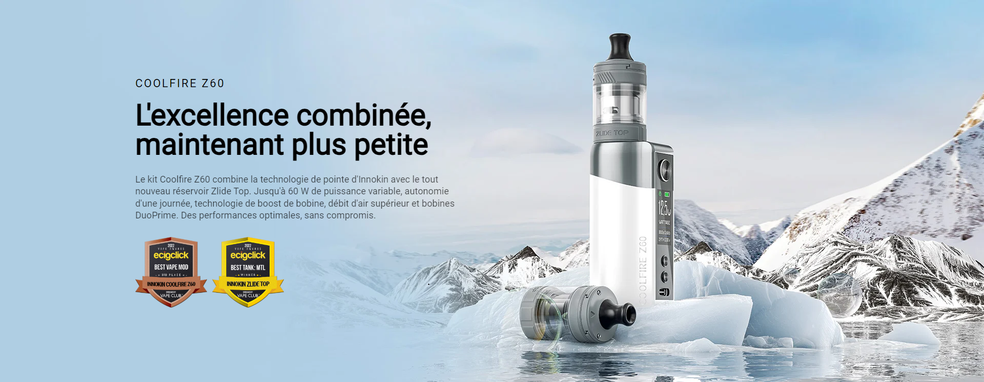 INNOKIN dévoile son nouveau bijou aux vapoteurs: KIT COOLFIRE Z60! Ce kit combine la box Coolfire Z60 et le fameux clearomiseur Zlide Top.