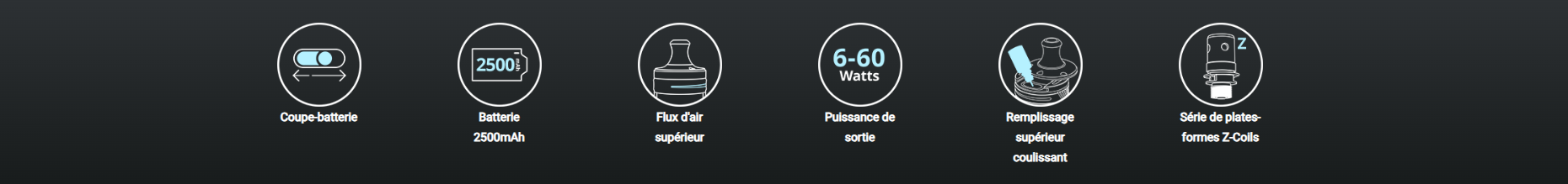 En digne représentant de la gamme CoolFire, la Z60, bien que proposant des fonctionnalités assez simples, ne peut s’empêcher d’être aussi une vitrine des innovations technologiques du fabriquant. Pour cela, la Z60 embarque un chipset performant qui, en plus de vous fournir toutes les protections électroniques d’usage, vous propose également des fonctionnalités propriétaire comme le Coil + ou REFRESH qui ont pour fonctions d’améliorer la durée de vie de vos résistances et votre expérience de vapotage.