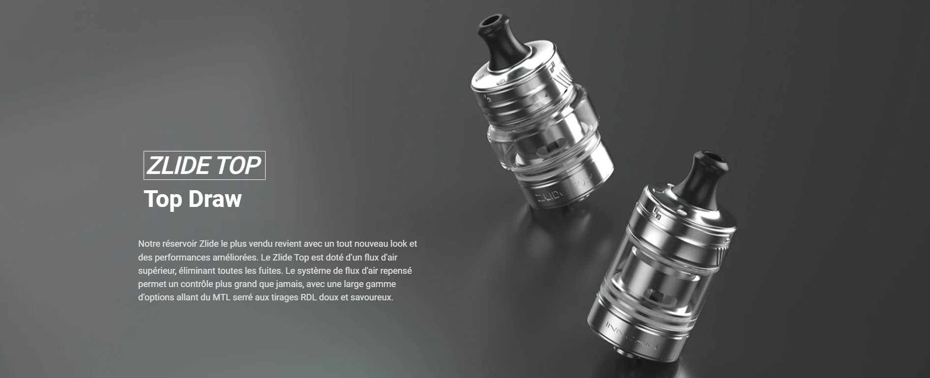 Le SLIDE premier du nom est un petit clearomiseur performant mais relativement simple de conception, INNOKIN a donc décidé de retravailler le concept pour toujours plus de performance et mettre le ZLIDE à jour des dernières innovations. Voici donc les grandes lignes de ce ZLIDE TOP :