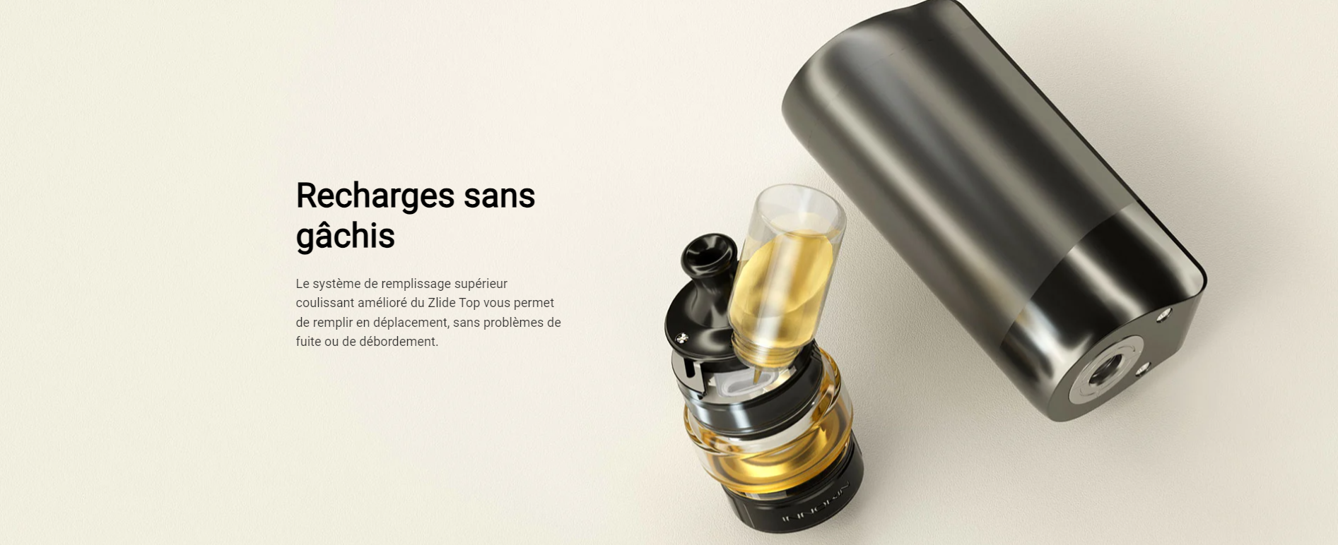 Rien de plus à ajouter concernant le fonctionnement de cette CoolFire Z60, passons donc à l’élément de vaporisation, le ZLIDE TOP.
