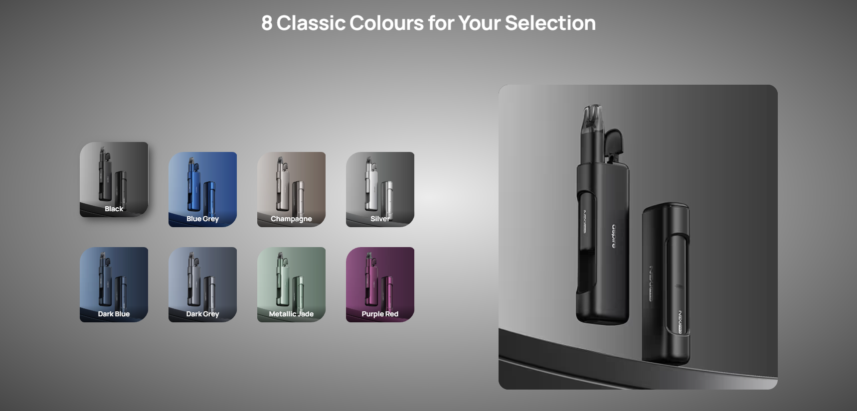 Commençons par le premier abord, l’aspect visuel. L’appareil offre un format rectangulaire, compact, des lignes épurées ainsi qu’une surface micro-texturée au toucher satiné qui confère à l’ensemble une apparence sobre, douce et élégante. Un appareil bien léché qui ne fera pas tâche où que vous soyez. Le fabricant à misé sur la robustesse et la légèreté d’une coque en alliage d’aluminium qui ajoute également un aspect qualitatif au produit. Vis-à-vis des modèles précédents la Nexi Pro en conserve le feeling, mais dans un format plus généreux, plus d’autonomie et la liberté de vapoter n’importe quel e-liquide.