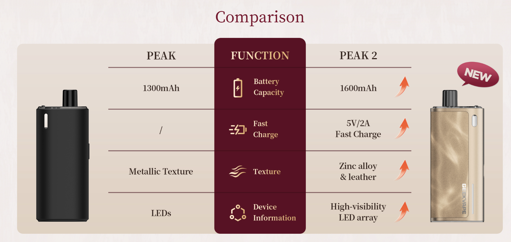 En conclusion, avec cette seconde itération du modèle PEAK, Geekvape mise sur la simplicité et l’autonomie. Finis les réglages (en dehors du débit d’air) et une plus grosse batterie, la PEAK 2 est taillée pour vous offrir un confort et une simplicité optimale. Adaptée aux plus débutants l’appareil élégant, classieux et performant séduira également les plus vétérans par ses nombreuses qualités. Voilà un appareil irréprochable en tous points, aussi agréable à l’œil que confortable en main ; aussi performant que satisfaisant, cette PEAK 2 ne vous fera ni honte ni défaut où que vous soyez, en randonnée comme en soirée habillée, l’appareil, taillé pour vous accompagner partout, répondra présent pour satisfaire toutes vos envies et besoins de fumer. Amateurs de tirages serrés à restrictifs et de simplicité, voici un appareil taillé pour vous. A acquérir sans hésitations.
